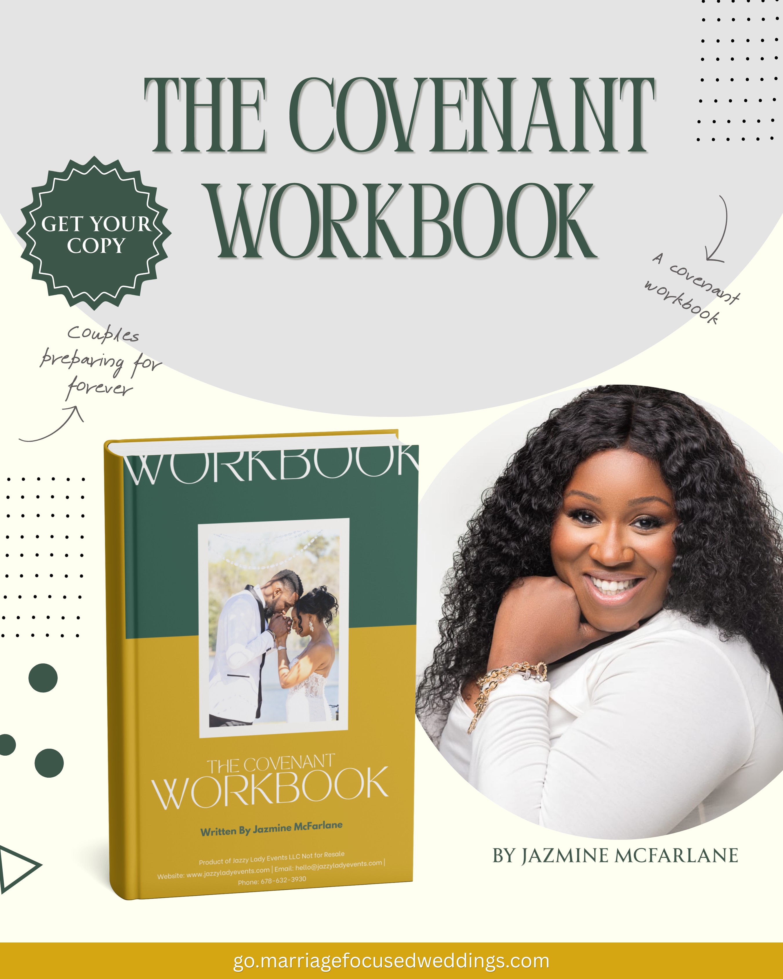 This workbook was created to help you and your partner prepare your hearts, strengthen your foundation, and walk into marriage with clarity, unity, and confidence, while we take care of the details that bring your vision to life.